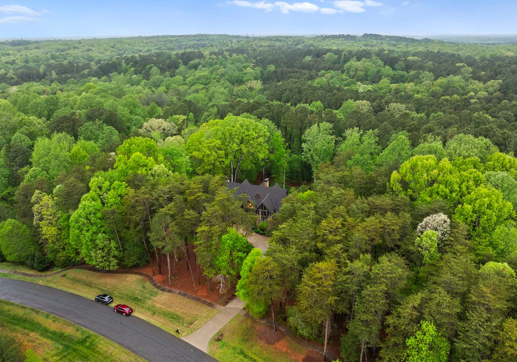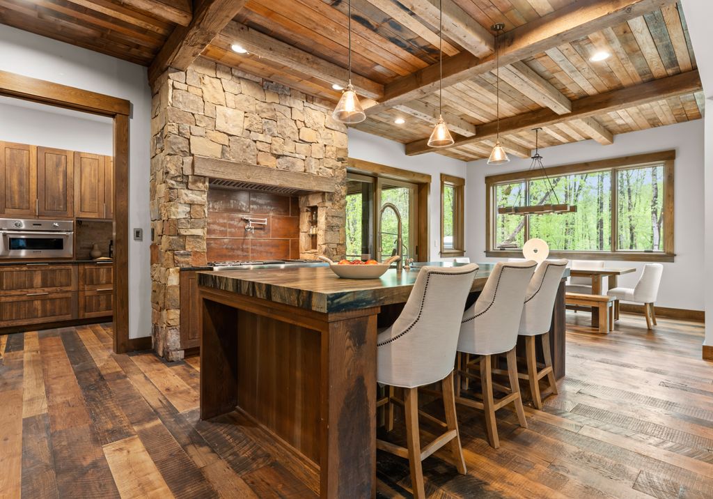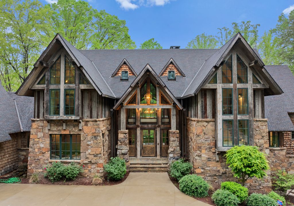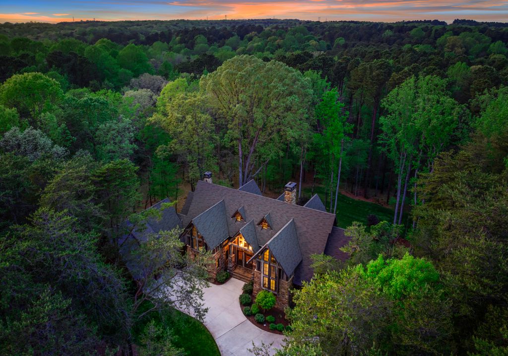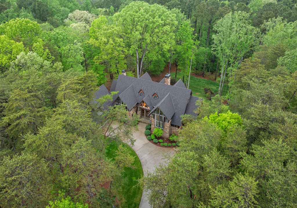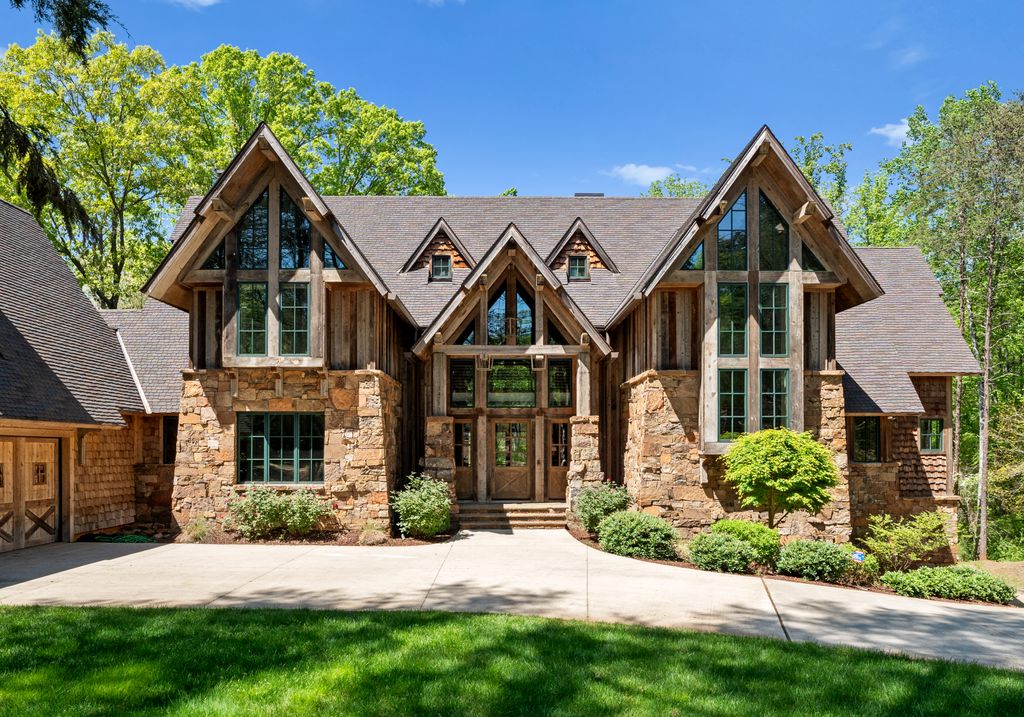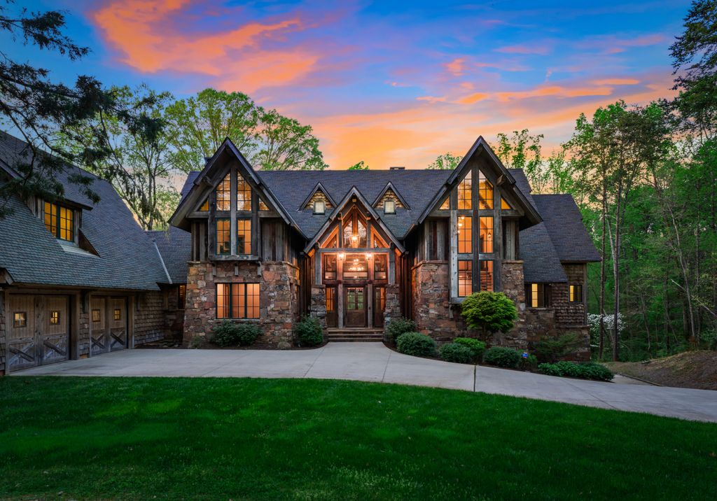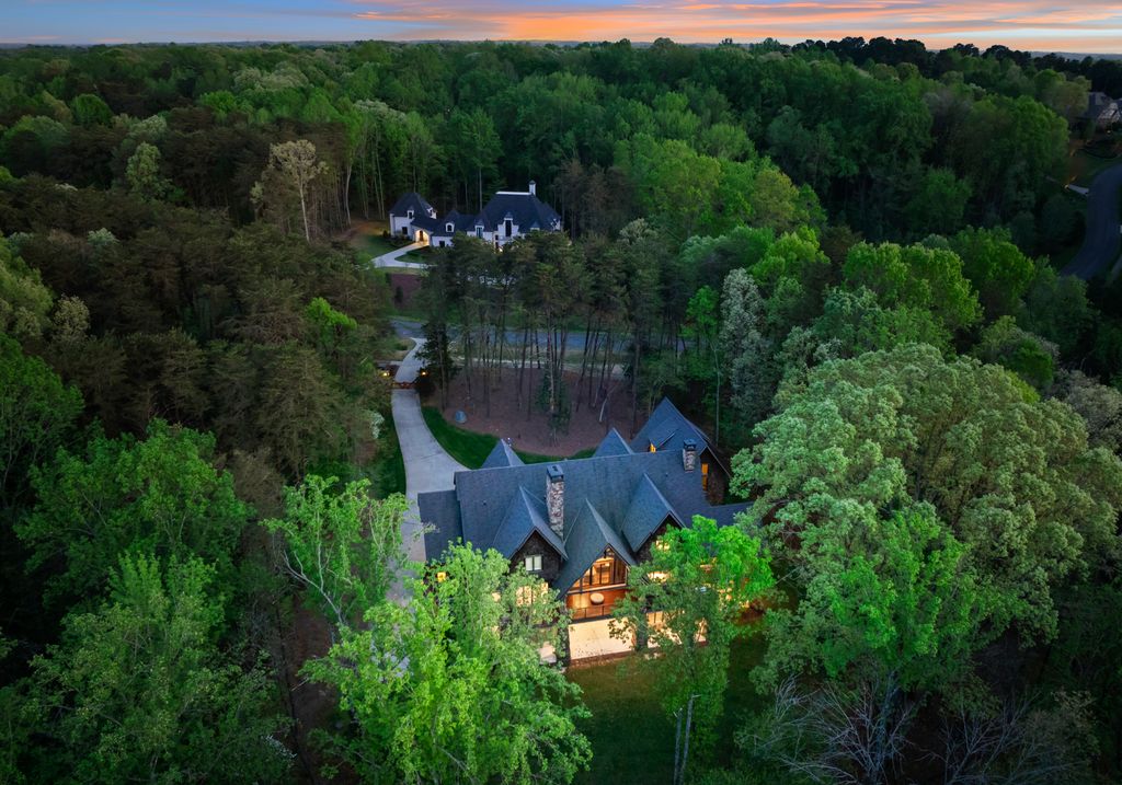 This stunning mountain-inspired retreat offers a rare blend of rustic charm and upscale comfort—tucked away just minutes from the heart of Charlotte in a setting that feels worlds apart. Crafted with care, it combines timeless materials and modern touches. Authentic Montana fieldstone, reclaimed timbers, and wide-plank oak floors create warmth and elegance, while expansive windows capture natural light and scenic views throughout. Energy-efficient features include Geothermal HVAC, spray foam insulation, radiant floor heating, and Control4 home automation with integrated sound. The immersive home theater, Quartzite island, and solid oak cabinetry reflect thoughtful design and high-end craftsmanship. A chef’s kitchen with Thermador appliances and a hidden scullery flows into open living areas with a dramatic stone fireplace. Outside, a 54” Wolf grill completes this peaceful, private escape—where mountain-lodge ambiance meets refined living in Charlotte’s most serene surroundings.