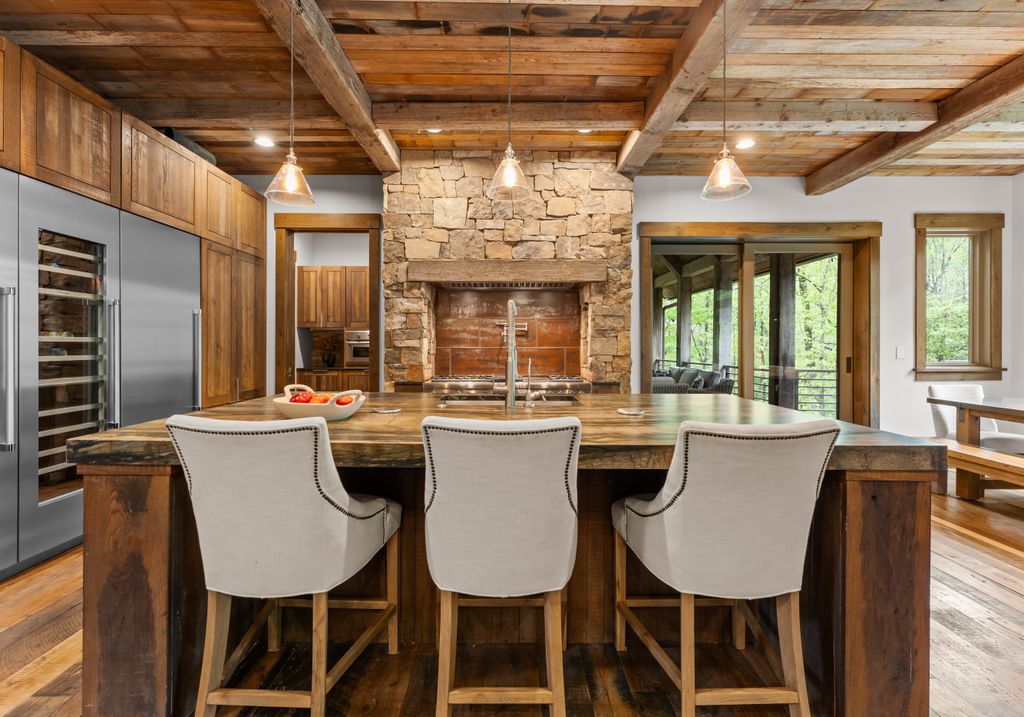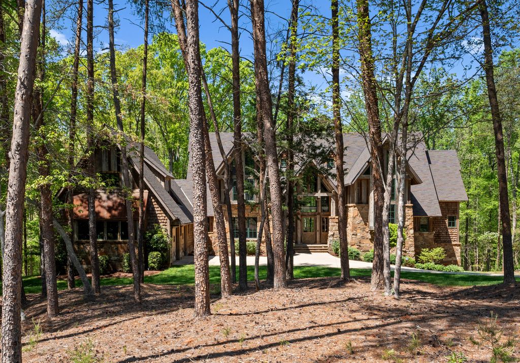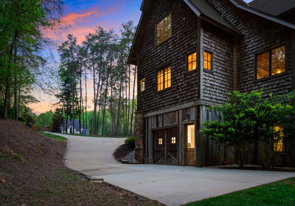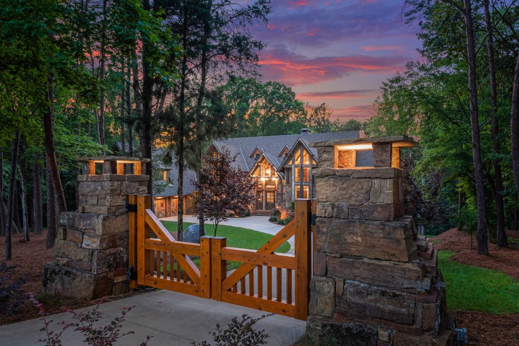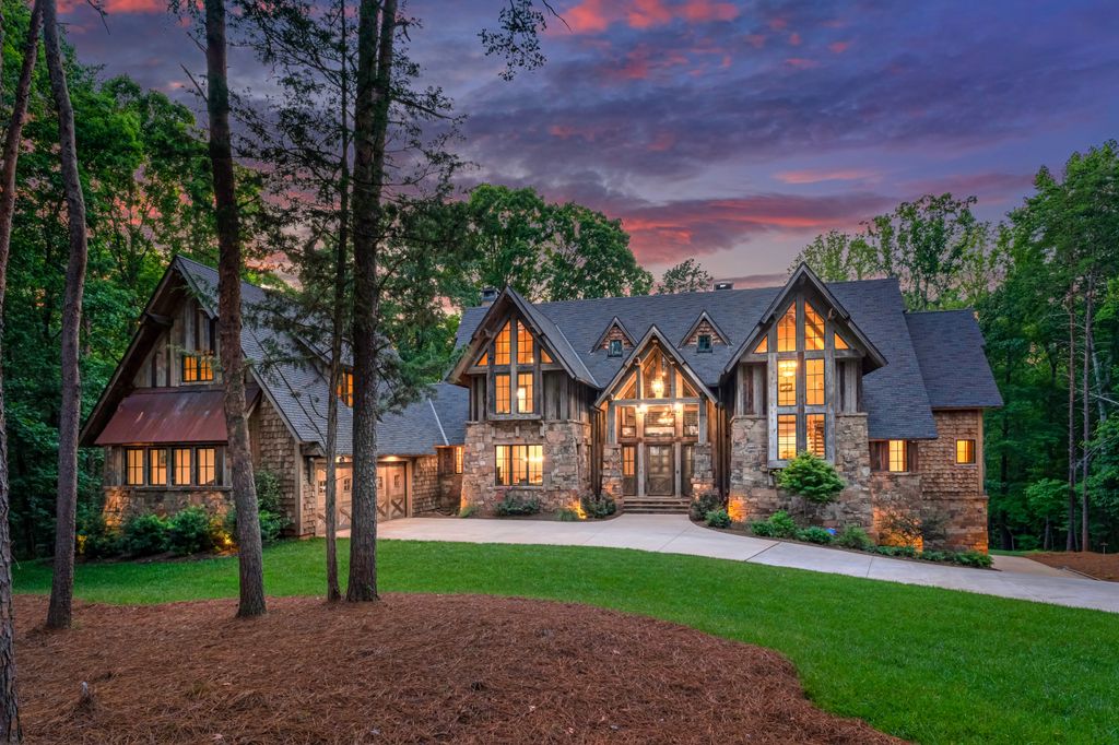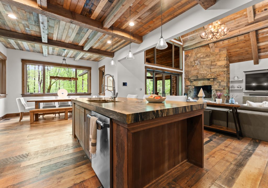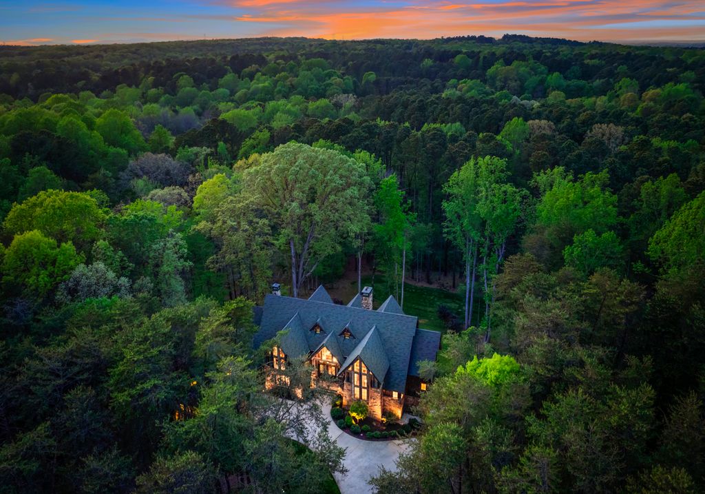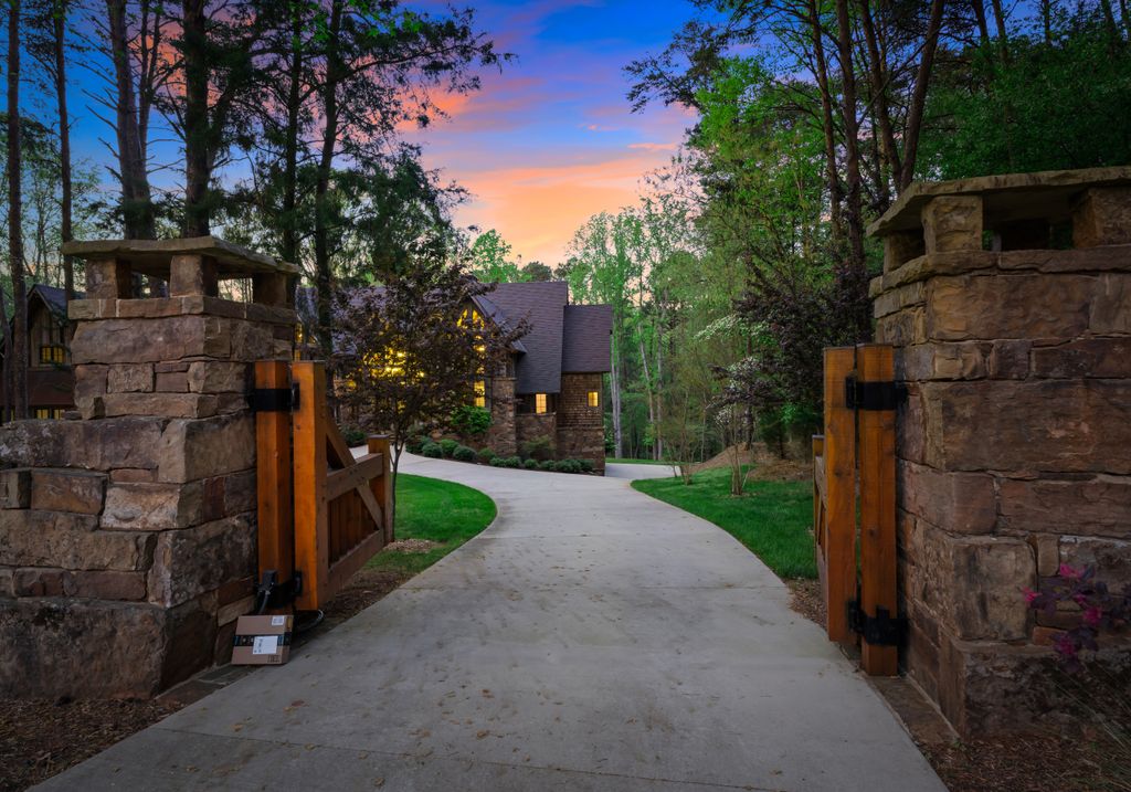 This stunning mountain-inspired retreat offers a rare blend of rustic charm and upscale comfort—tucked away just minutes from the heart of Charlotte in a setting that feels worlds apart. Crafted with care, it combines timeless materials and modern touches. Authentic Montana fieldstone, reclaimed timbers, and wide-plank oak floors create warmth and elegance, while expansive windows capture natural light and scenic views throughout. Energy-efficient features include Geothermal HVAC, spray foam insulation, radiant floor heating, and Control4 home automation with integrated sound. The immersive home theater, Quartzite island, and solid oak cabinetry reflect thoughtful design and high-end craftsmanship. A chef’s kitchen with Thermador appliances and a hidden scullery flows into open living areas with a dramatic stone fireplace. Outside, a 54” Wolf grill completes this peaceful, private escape—where mountain-lodge ambiance meets refined living in Charlotte’s most serene surroundings.