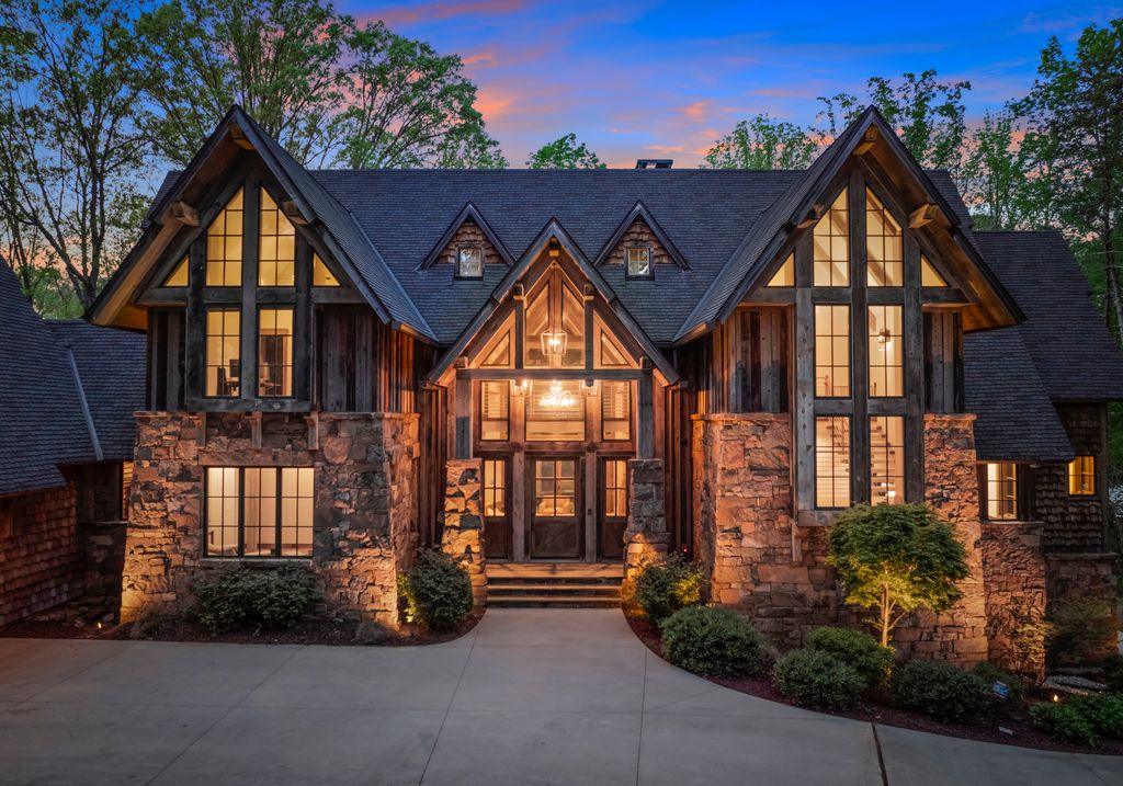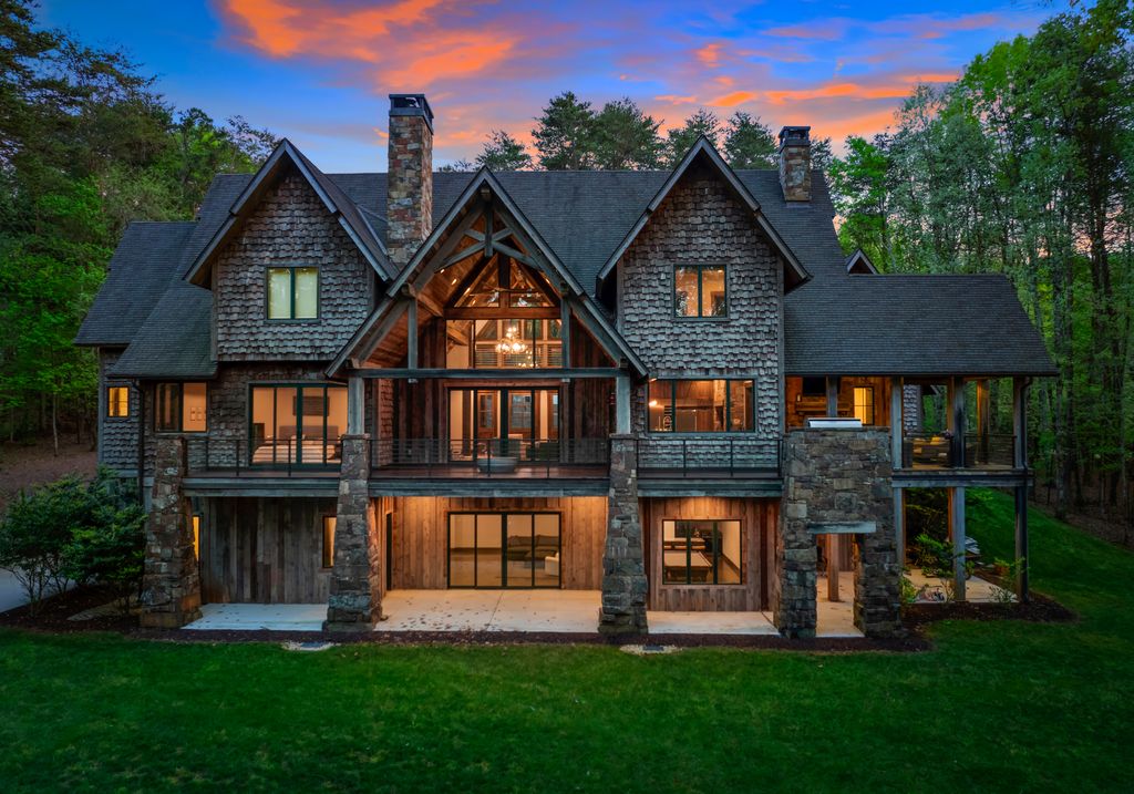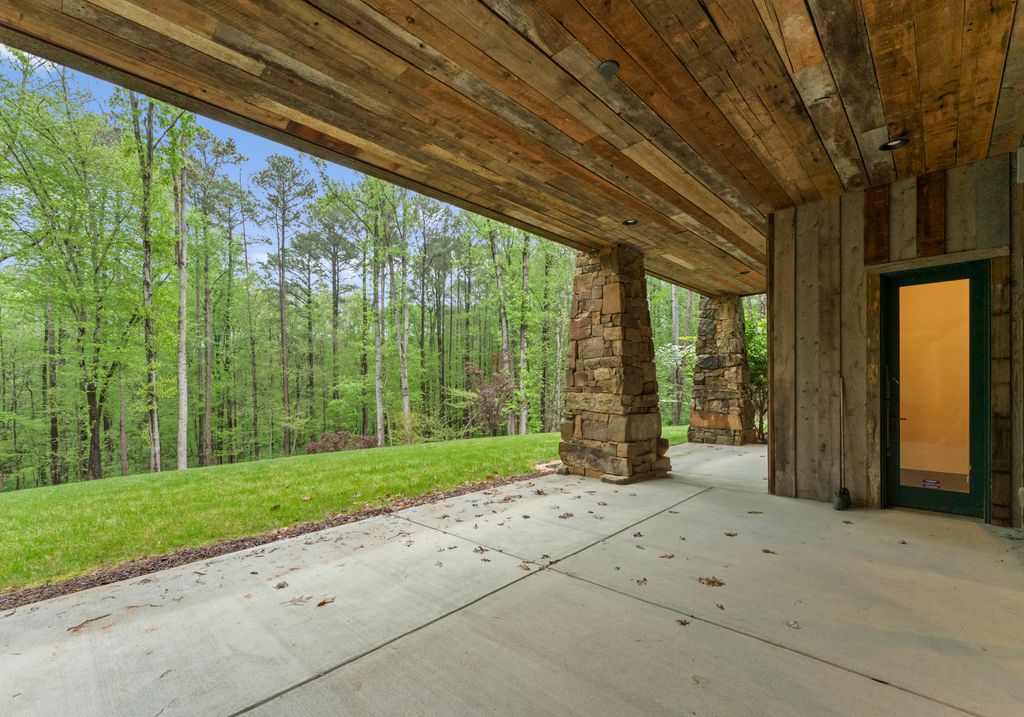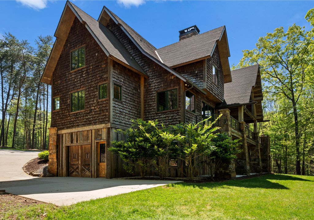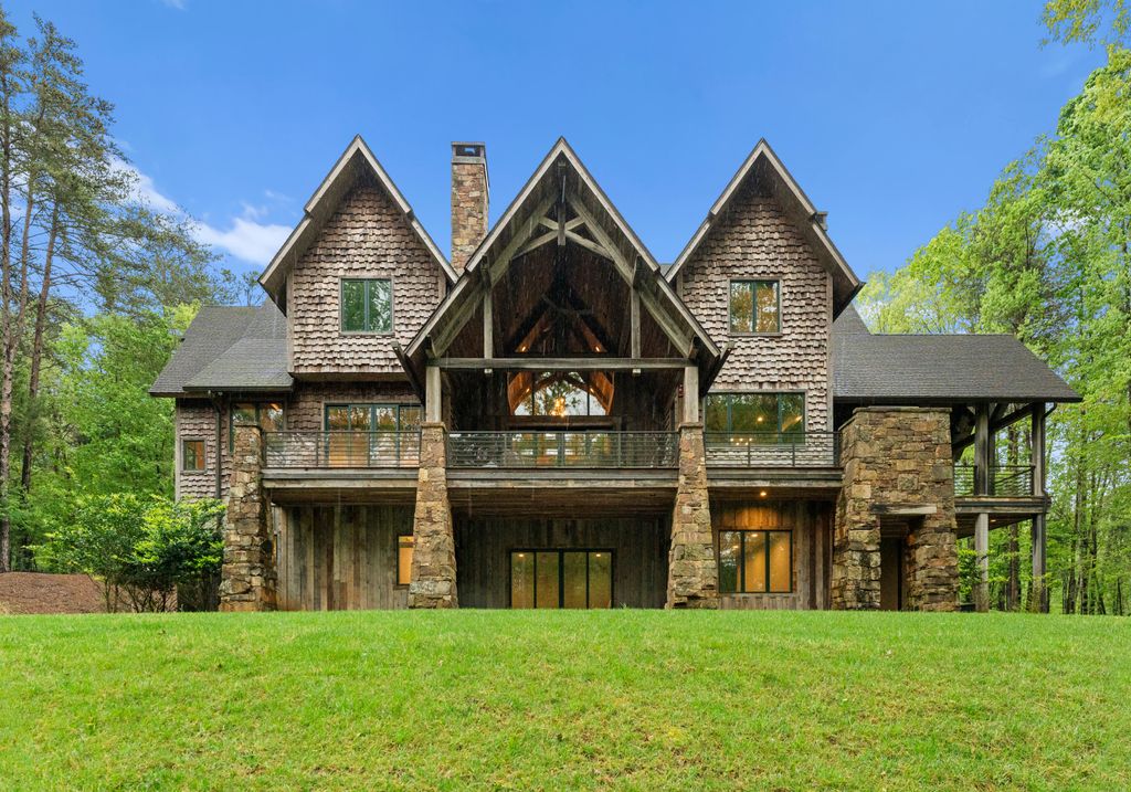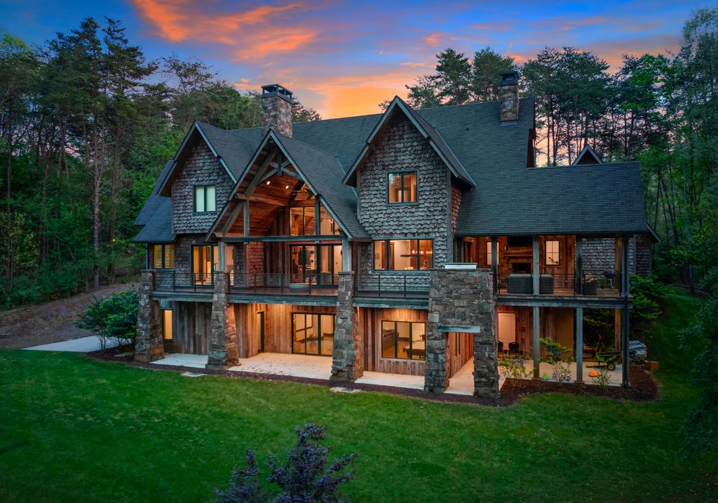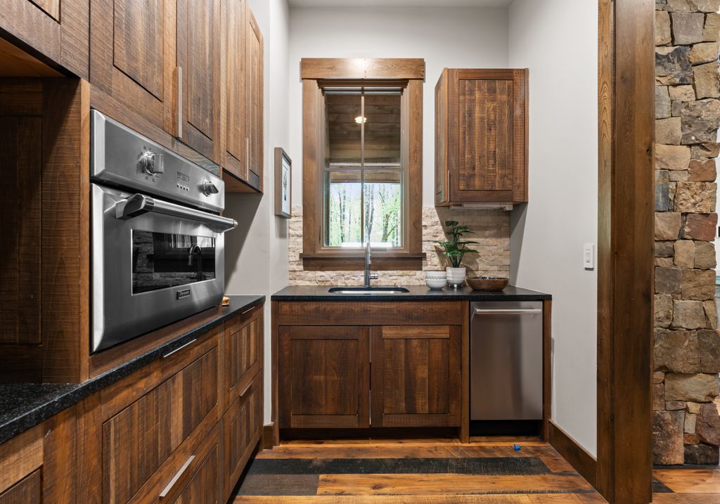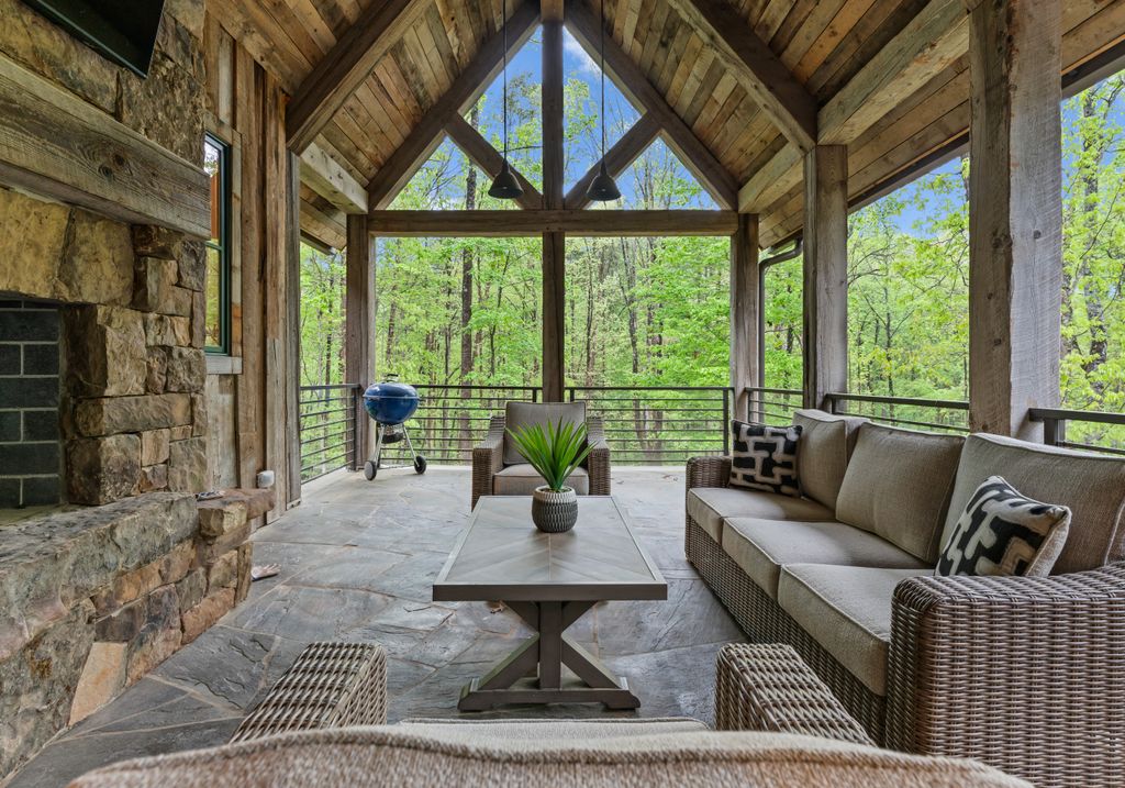 This stunning mountain-inspired retreat offers a rare blend of rustic charm and upscale comfort—tucked away just minutes from the heart of Charlotte in a setting that feels worlds apart. Crafted with care, it combines timeless materials and modern touches. Authentic Montana fieldstone, reclaimed timbers, and wide-plank oak floors create warmth and elegance, while expansive windows capture natural light and scenic views throughout. Energy-efficient features include Geothermal HVAC, spray foam insulation, radiant floor heating, and Control4 home automation with integrated sound. The immersive home theater, Quartzite island, and solid oak cabinetry reflect thoughtful design and high-end craftsmanship. A chef’s kitchen with Thermador appliances and a hidden scullery flows into open living areas with a dramatic stone fireplace. Outside, a 54” Wolf grill completes this peaceful, private escape—where mountain-lodge ambiance meets refined living in Charlotte’s most serene surroundings.