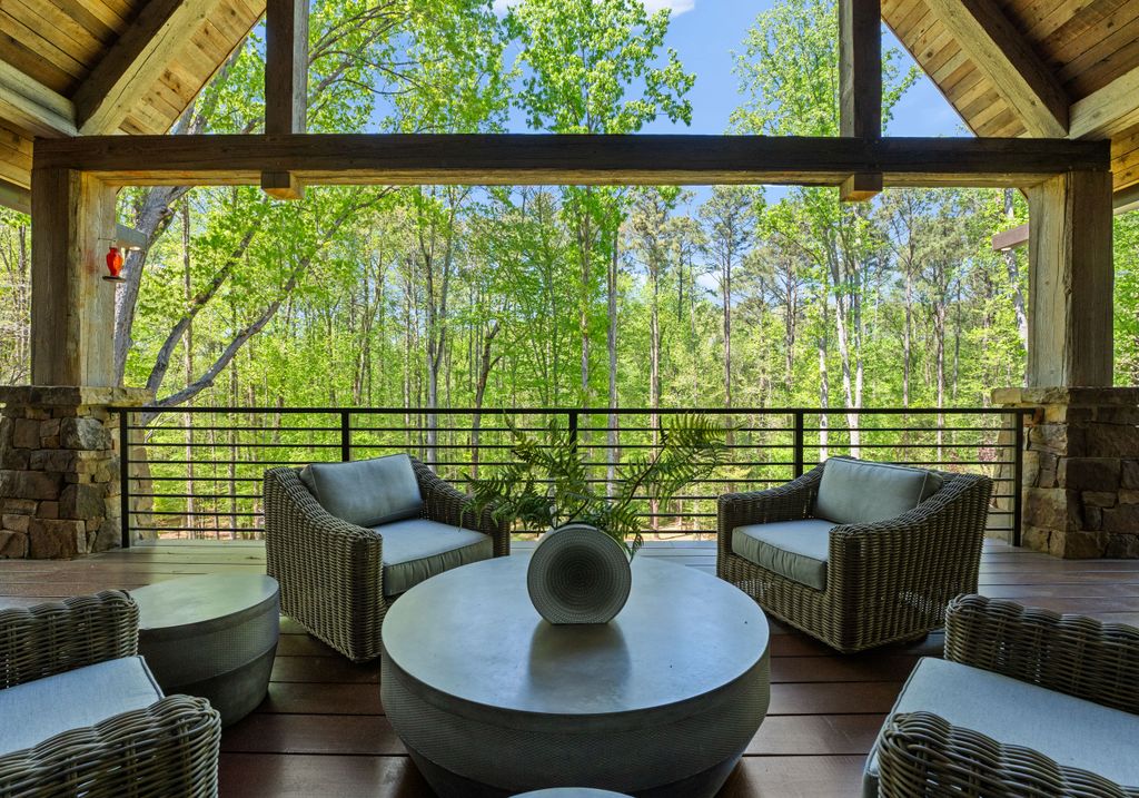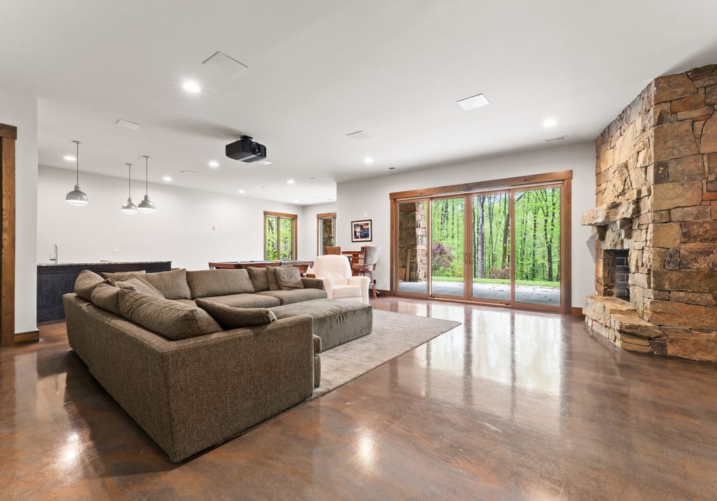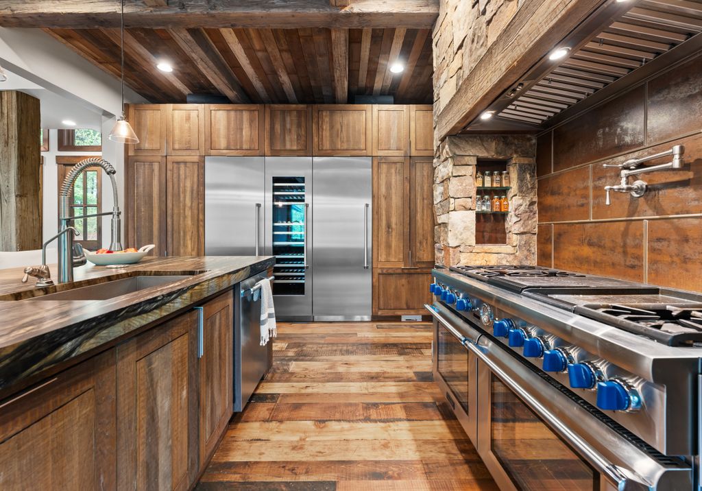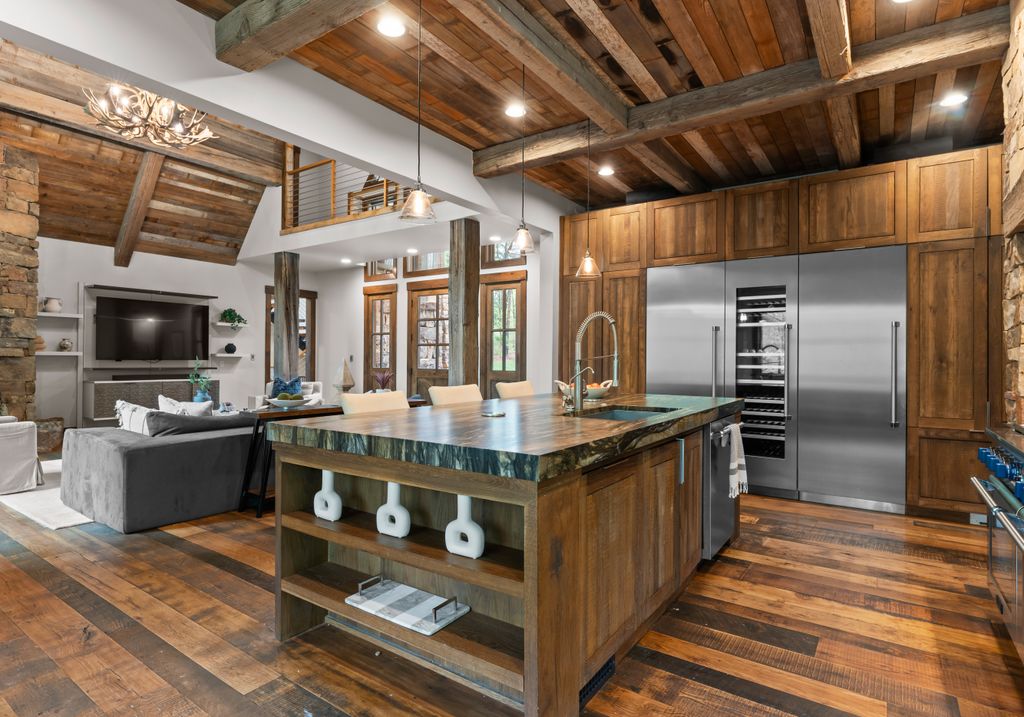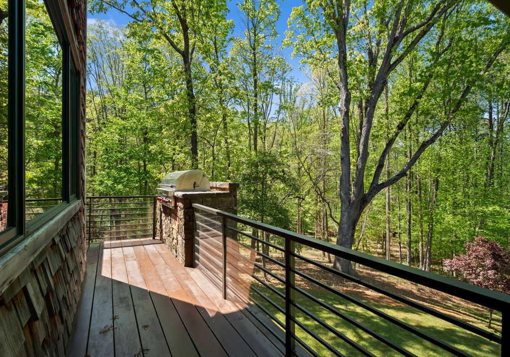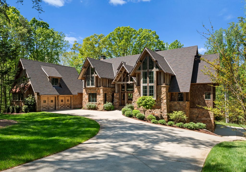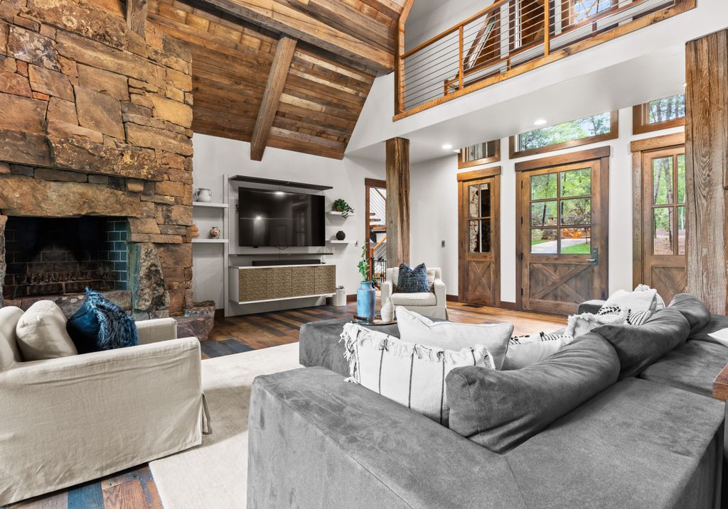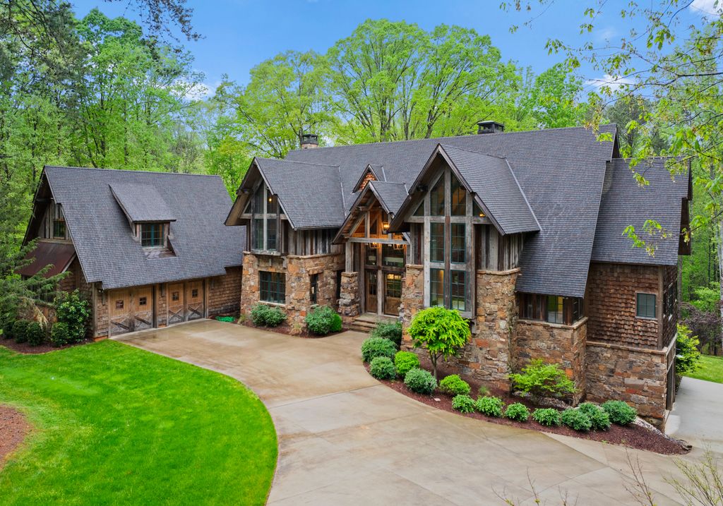 This stunning mountain-inspired retreat offers a rare blend of rustic charm and upscale comfort—tucked away just minutes from the heart of Charlotte in a setting that feels worlds apart. Crafted with care, it combines timeless materials and modern touches. Authentic Montana fieldstone, reclaimed timbers, and wide-plank oak floors create warmth and elegance, while expansive windows capture natural light and scenic views throughout. Energy-efficient features include Geothermal HVAC, spray foam insulation, radiant floor heating, and Control4 home automation with integrated sound. The immersive home theater, Quartzite island, and solid oak cabinetry reflect thoughtful design and high-end craftsmanship. A chef’s kitchen with Thermador appliances and a hidden scullery flows into open living areas with a dramatic stone fireplace. Outside, a 54” Wolf grill completes this peaceful, private escape—where mountain-lodge ambiance meets refined living in Charlotte’s most serene surroundings.