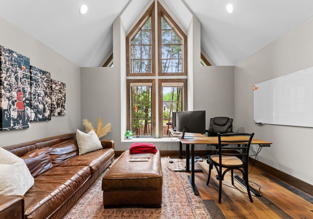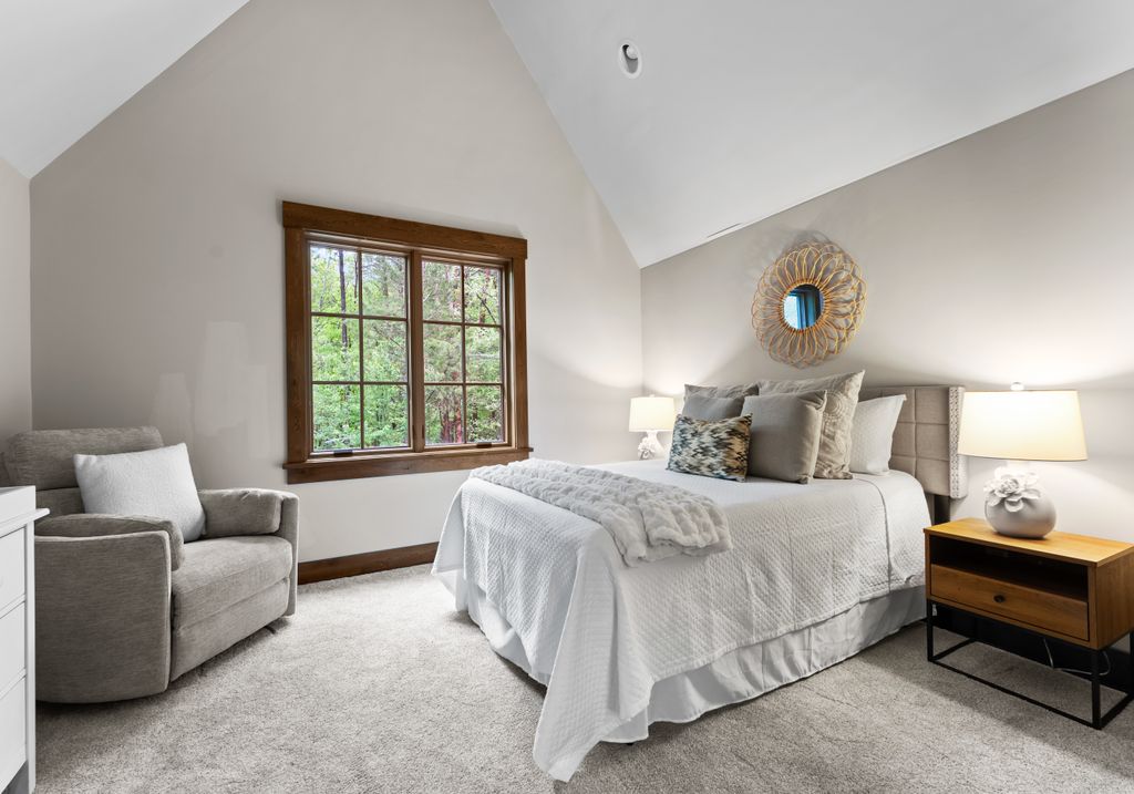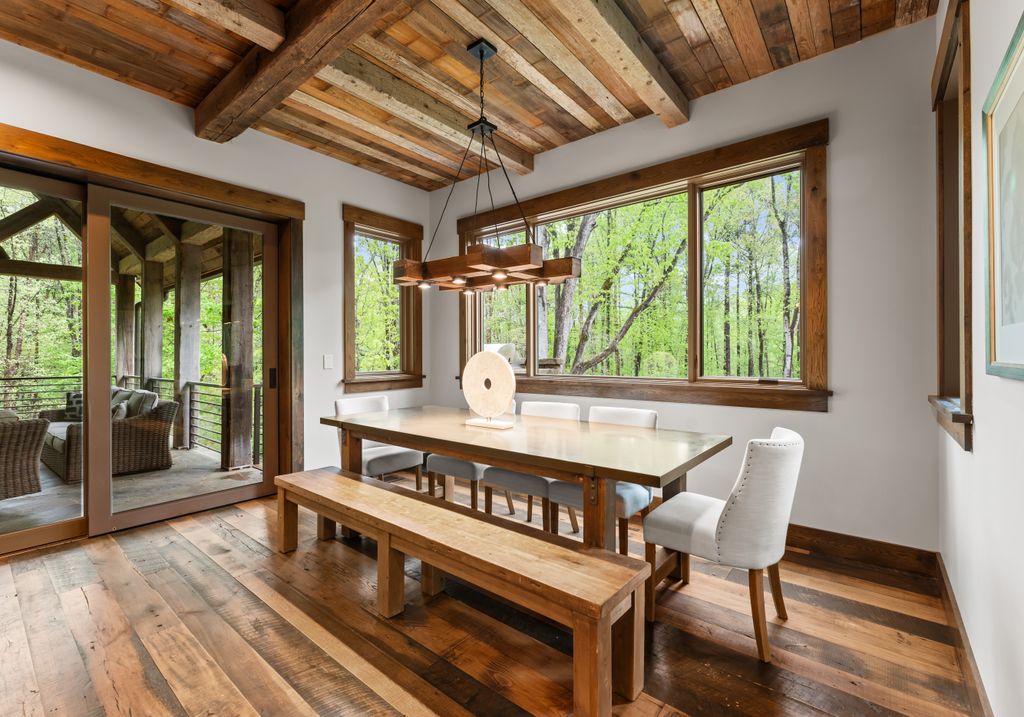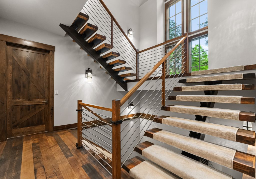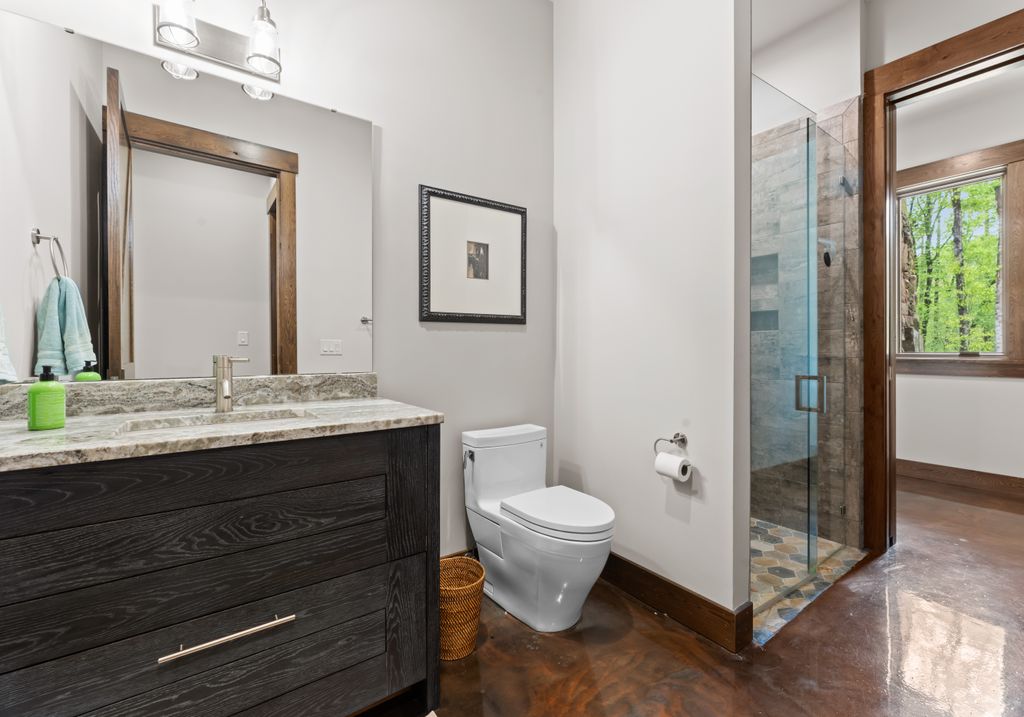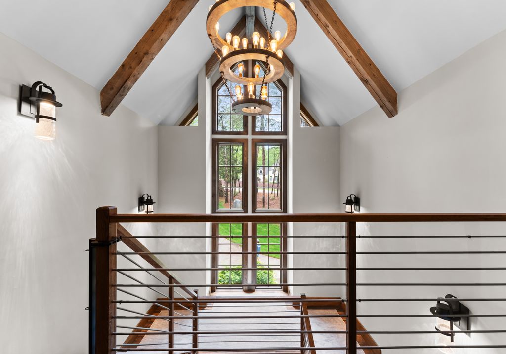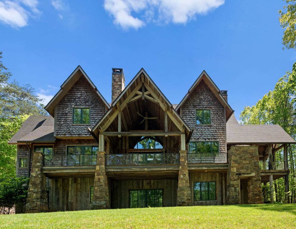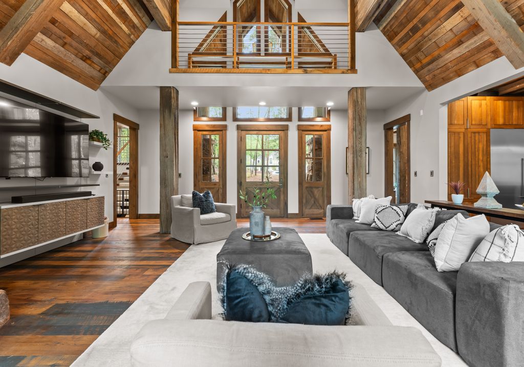 This stunning mountain-inspired retreat offers a rare blend of rustic charm and upscale comfort—tucked away just minutes from the heart of Charlotte in a setting that feels worlds apart. Crafted with care, it combines timeless materials and modern touches. Authentic Montana fieldstone, reclaimed timbers, and wide-plank oak floors create warmth and elegance, while expansive windows capture natural light and scenic views throughout. Energy-efficient features include Geothermal HVAC, spray foam insulation, radiant floor heating, and Control4 home automation with integrated sound. The immersive home theater, Quartzite island, and solid oak cabinetry reflect thoughtful design and high-end craftsmanship. A chef’s kitchen with Thermador appliances and a hidden scullery flows into open living areas with a dramatic stone fireplace. Outside, a 54” Wolf grill completes this peaceful, private escape—where mountain-lodge ambiance meets refined living in Charlotte’s most serene surroundings.