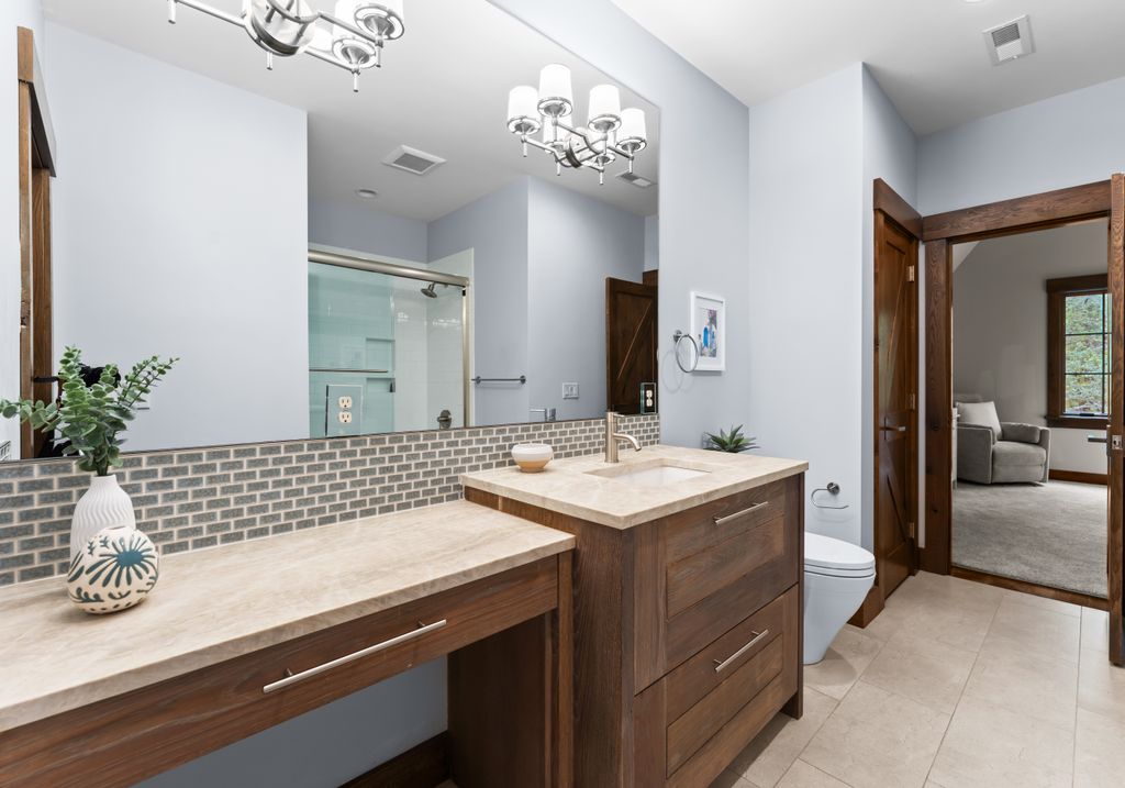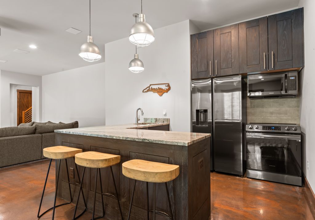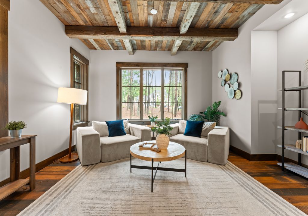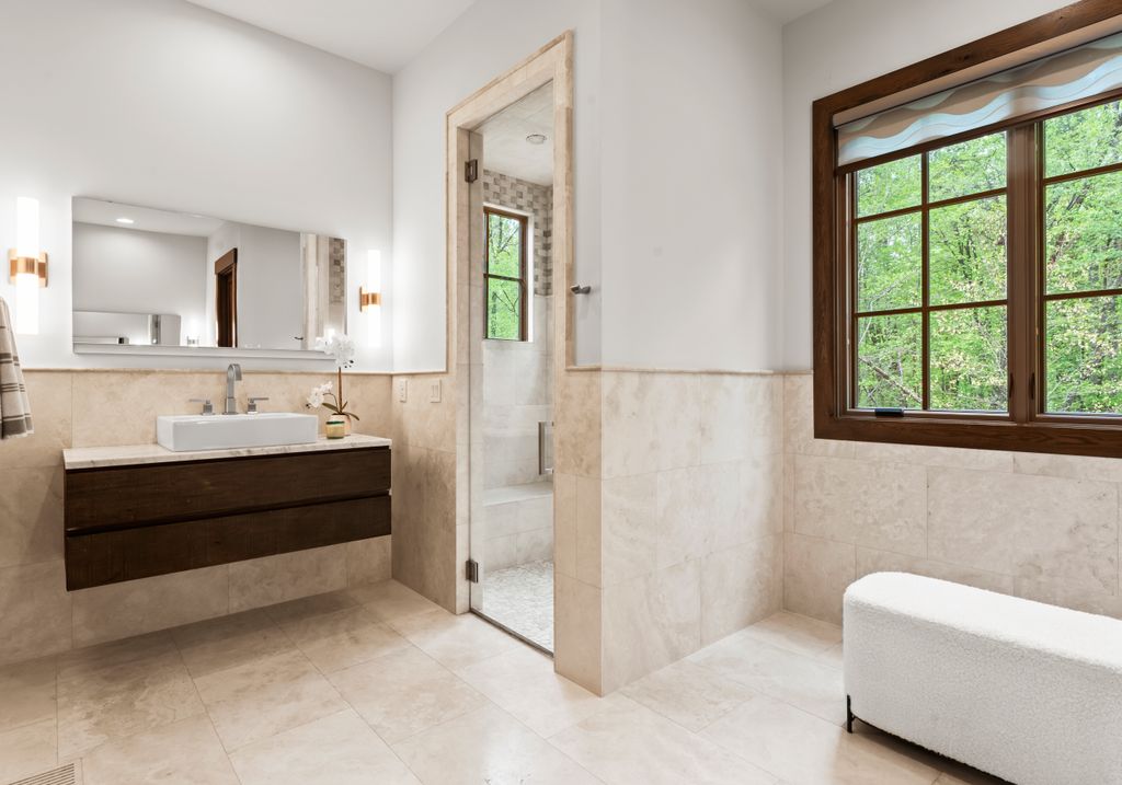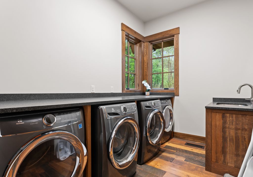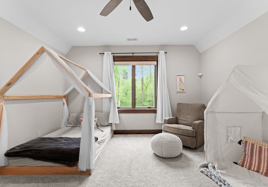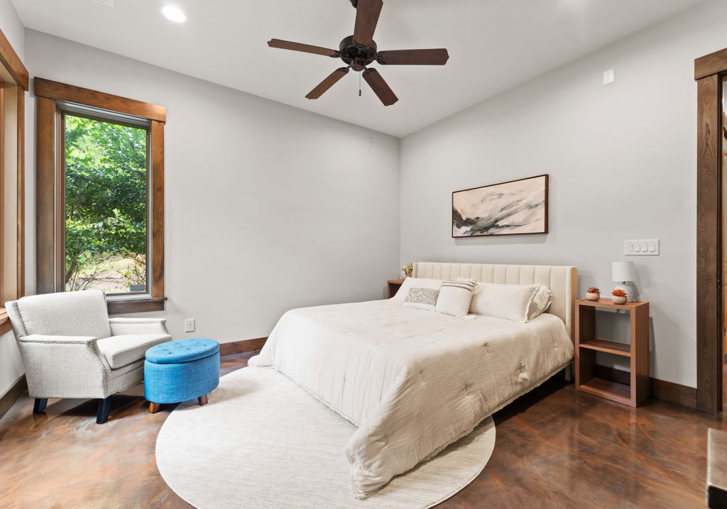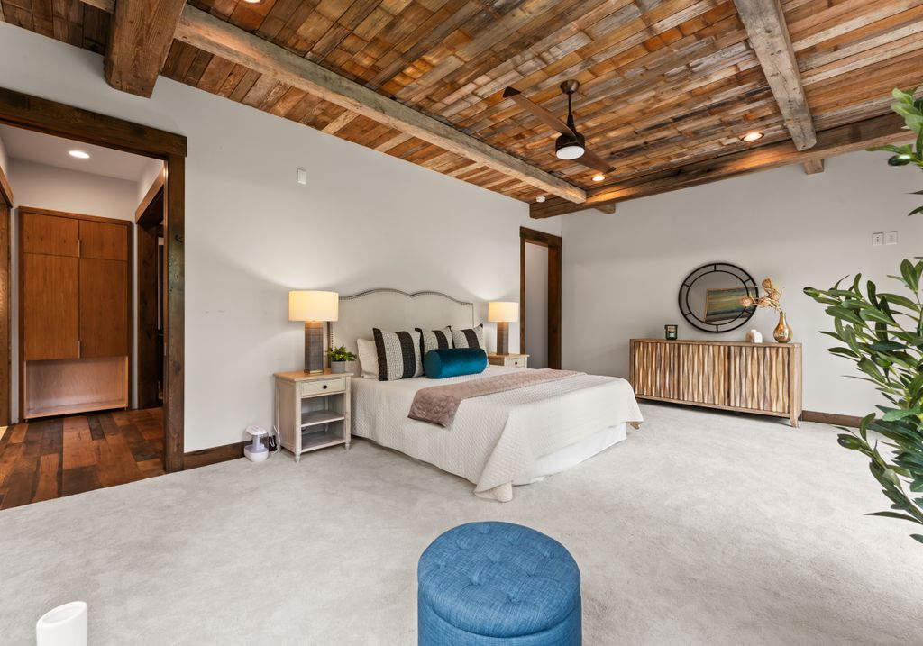 This stunning mountain-inspired retreat offers a rare blend of rustic charm and upscale comfort—tucked away just minutes from the heart of Charlotte in a setting that feels worlds apart. Crafted with care, it combines timeless materials and modern touches. Authentic Montana fieldstone, reclaimed timbers, and wide-plank oak floors create warmth and elegance, while expansive windows capture natural light and scenic views throughout. Energy-efficient features include Geothermal HVAC, spray foam insulation, radiant floor heating, and Control4 home automation with integrated sound. The immersive home theater, Quartzite island, and solid oak cabinetry reflect thoughtful design and high-end craftsmanship. A chef’s kitchen with Thermador appliances and a hidden scullery flows into open living areas with a dramatic stone fireplace. Outside, a 54” Wolf grill completes this peaceful, private escape—where mountain-lodge ambiance meets refined living in Charlotte’s most serene surroundings.