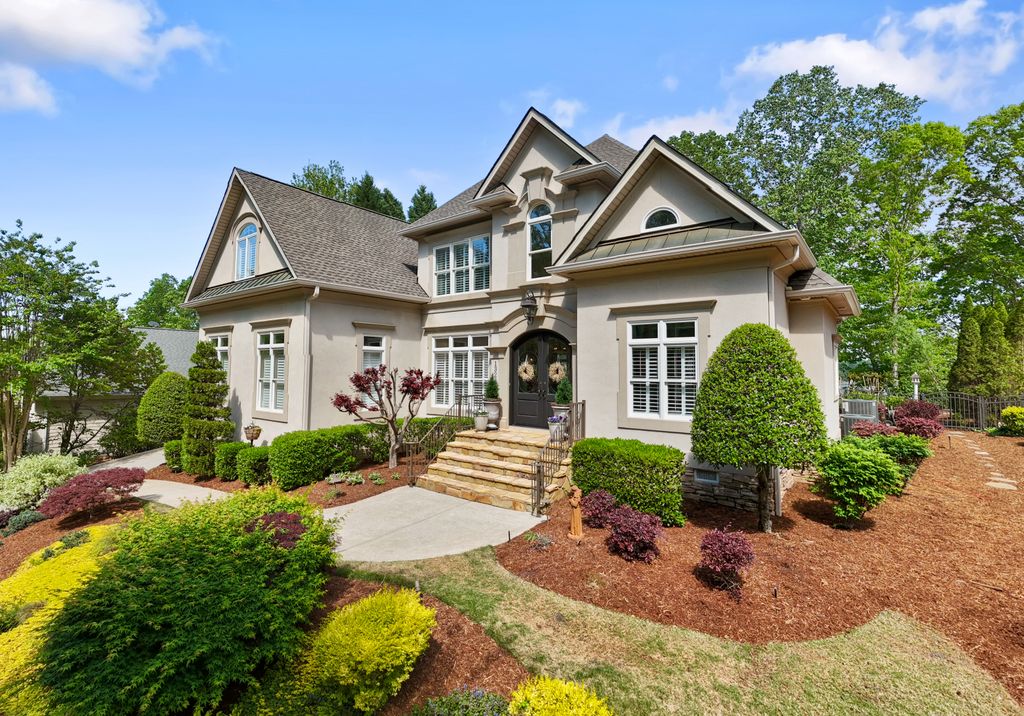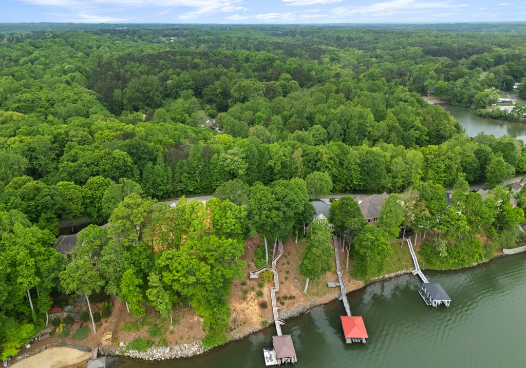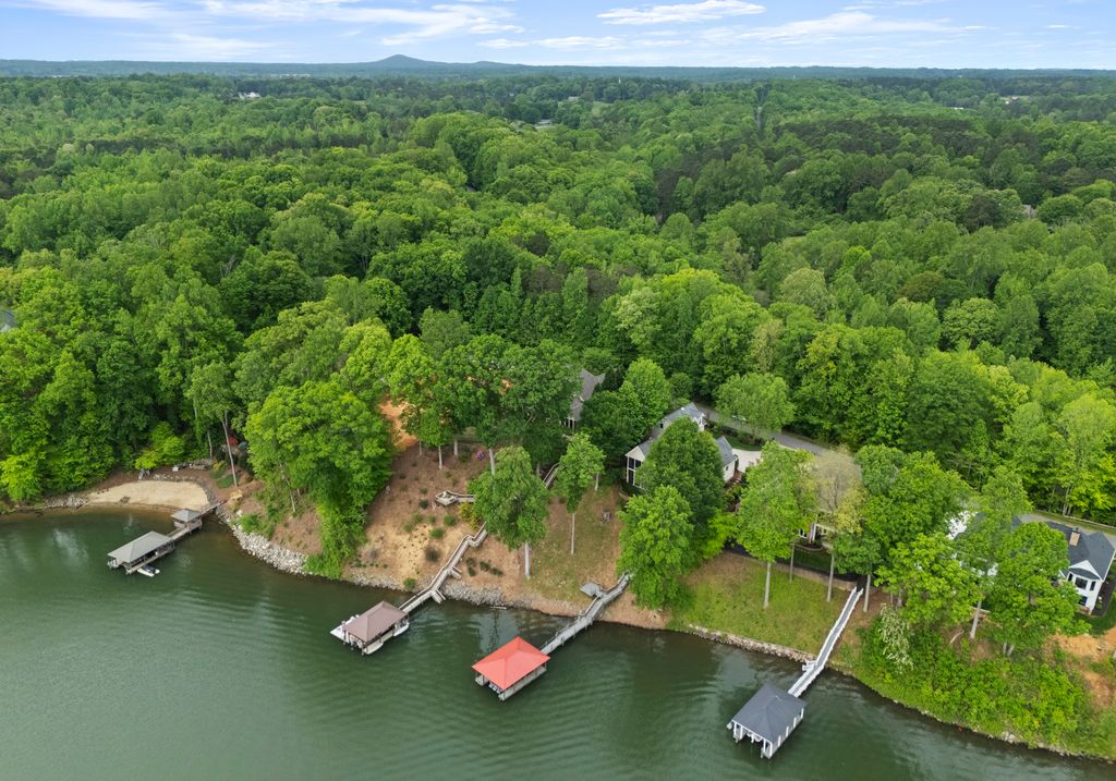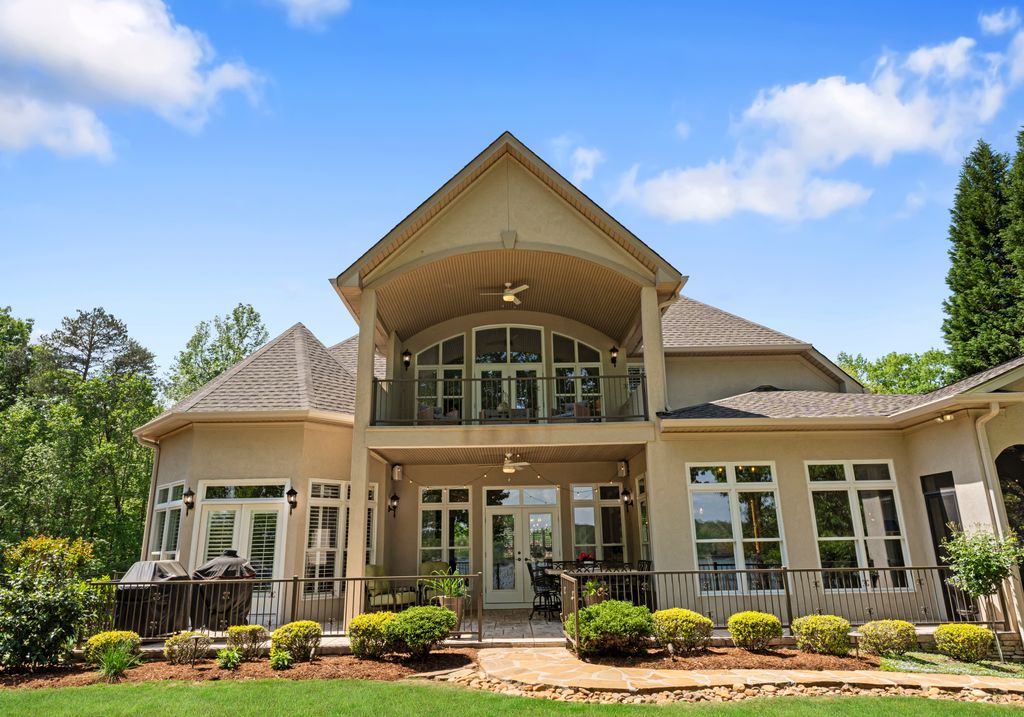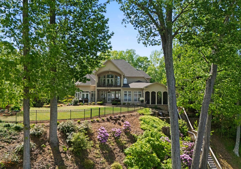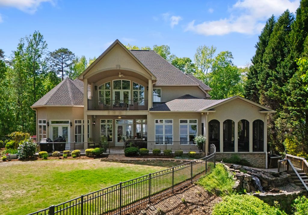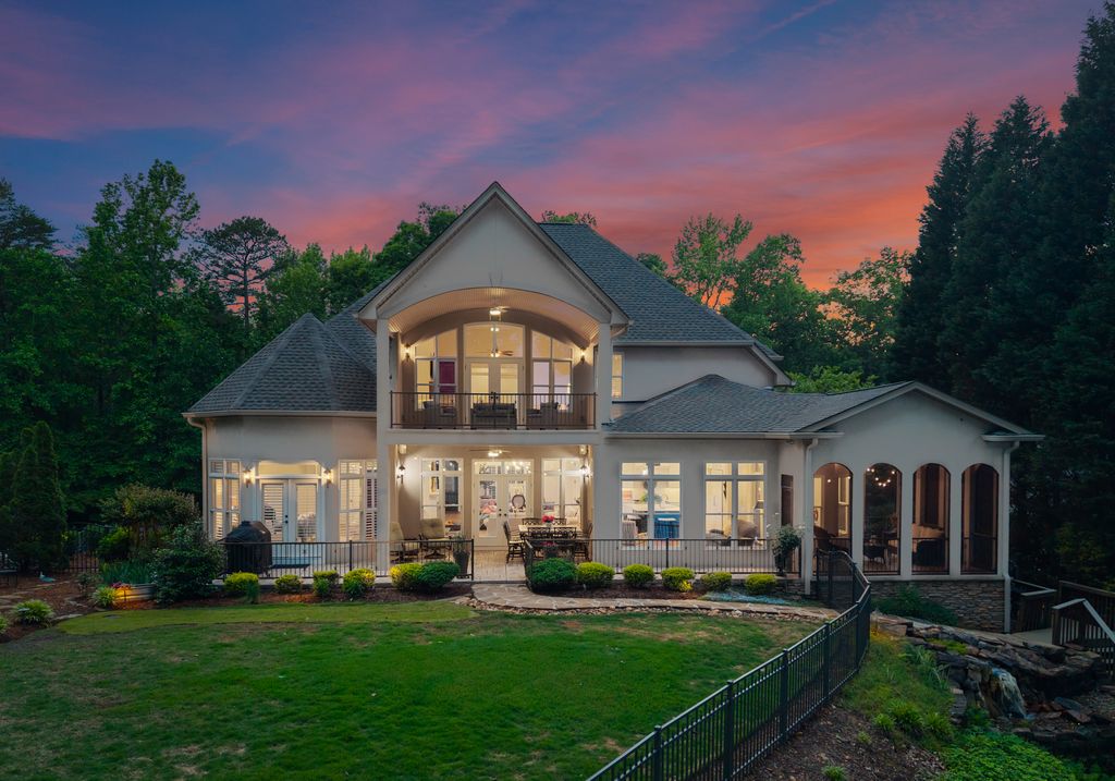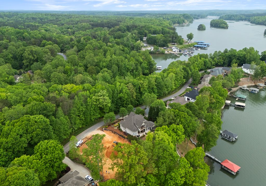 Welcome to Astoria, a private gated enclave of custom waterfront homes, which boasts 40 acres of natural woodlands, 5 miles of walking trails, community garden and a golf cart path to community pier. Just minutes to shopping and restaurants. Enjoy main level living, an open light filled floor plan, gorgeous designer kitchen with a scullery. Whether you are hosting guests on the charming screened porch, enjoying the veranda or taking in the view on your private dock this home is designed for unforgettable lakeside entertaining. This property has a rare flat lakeside yard with room for a pool! You don't want to miss this one!
