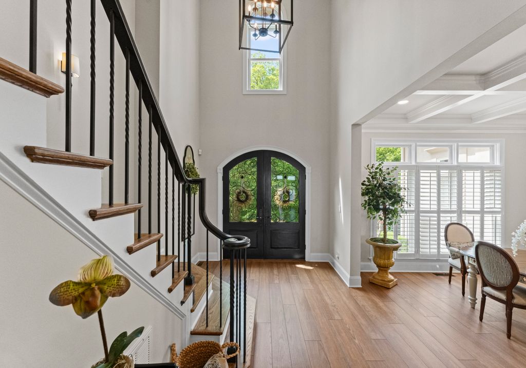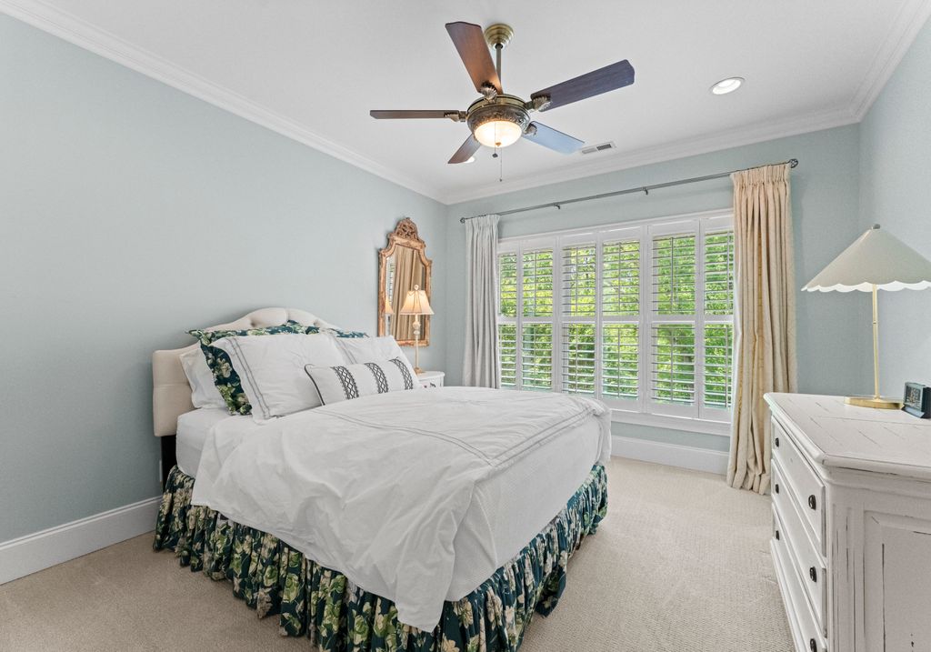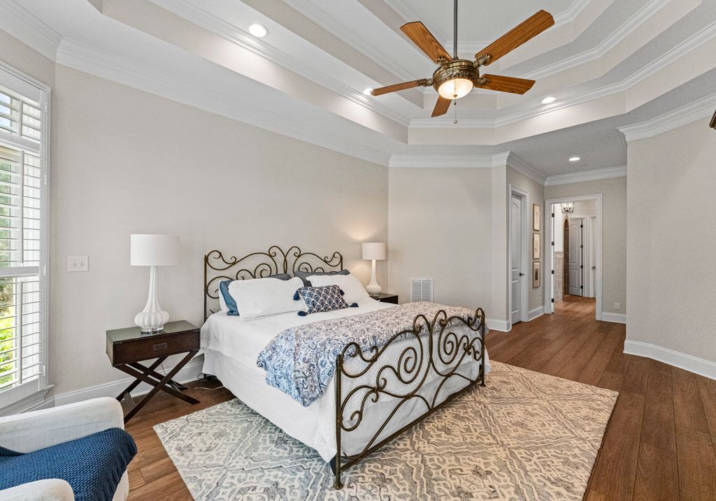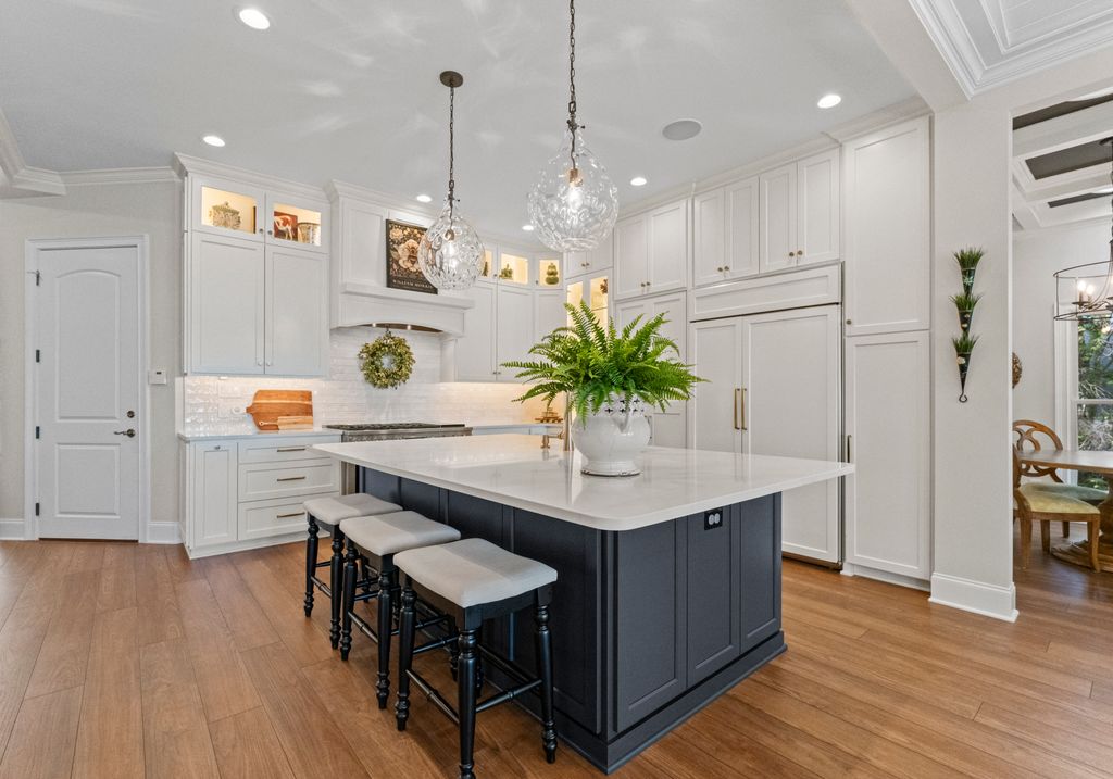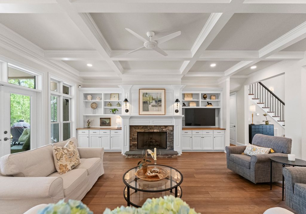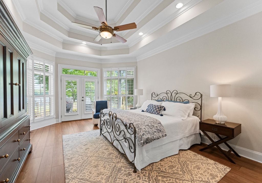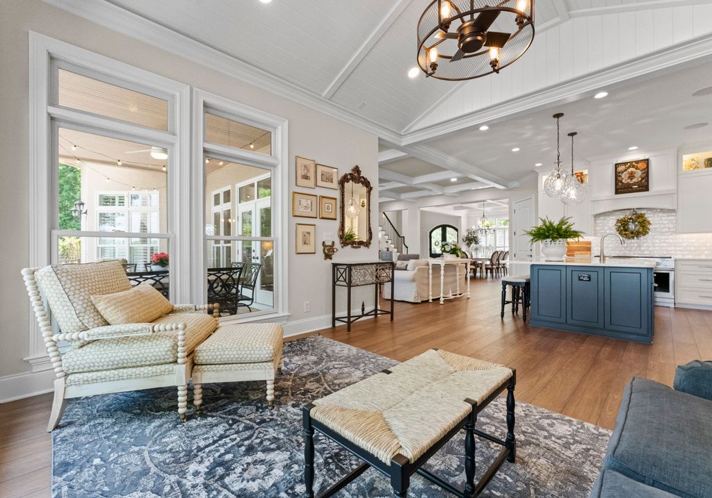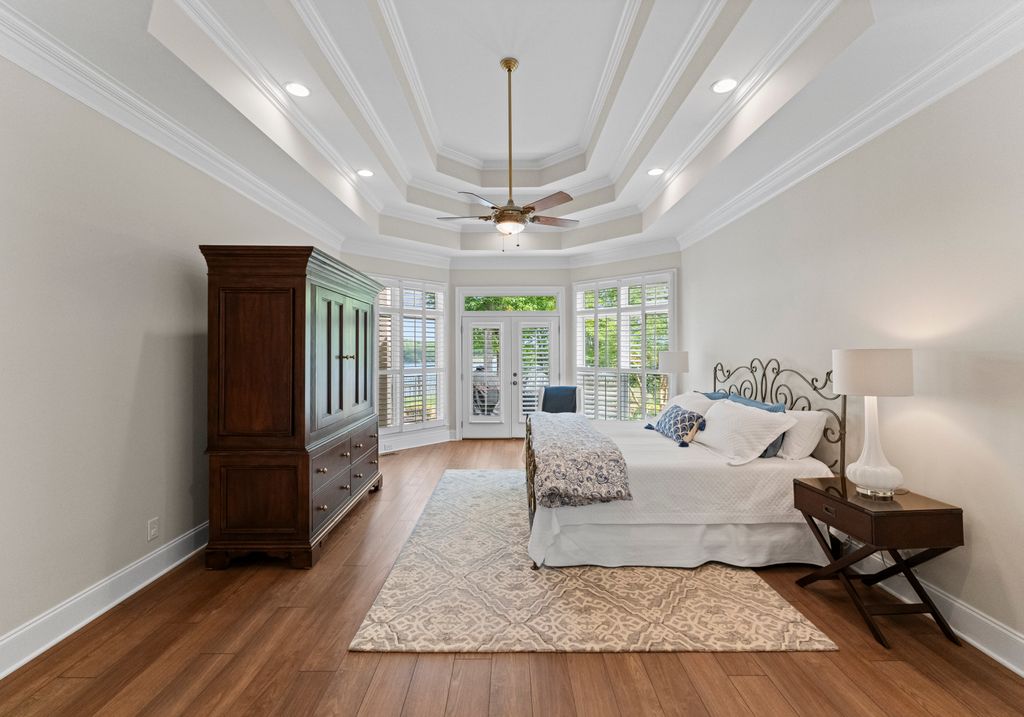 Welcome to Astoria, a private gated enclave of custom waterfront homes, which boasts 40 acres of natural woodlands, 5 miles of walking trails, community garden and a golf cart path to community pier. Just minutes to shopping and restaurants. Enjoy main level living, an open light filled floor plan, gorgeous designer kitchen with a scullery. Whether you are hosting guests on the charming screened porch, enjoying the veranda or taking in the view on your private dock this home is designed for unforgettable lakeside entertaining. This property has a rare flat lakeside yard with room for a pool! You don't want to miss this one!