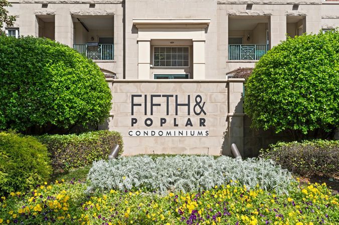 LIVE THE TURN KEY RESORT LIFESTYLE AT 5TH & POPLAR: FULL TIME ON SITE CONCIERGE & AWARD WINNING ON SITE HOA management., pool w outdoor kitchen, professionally landscaped gated courtyard w putting green, fountain, dog park, state-of-art fitness center, cozy library w gas fireplace, fireside terrace w TV & grills, media room, cyber & coffee cafes& resident car wash. 2 full time supers & maintenance staff, HARRIS TEETER, NAIL SALON & DRY CLEANERS in the building.