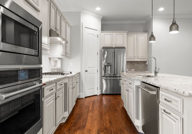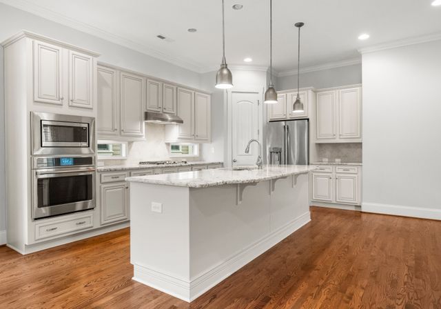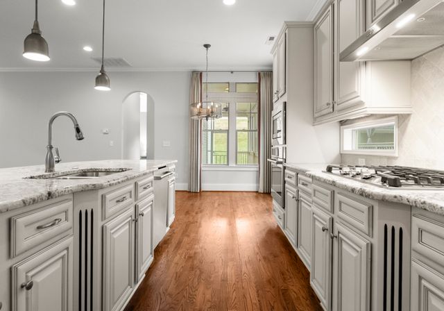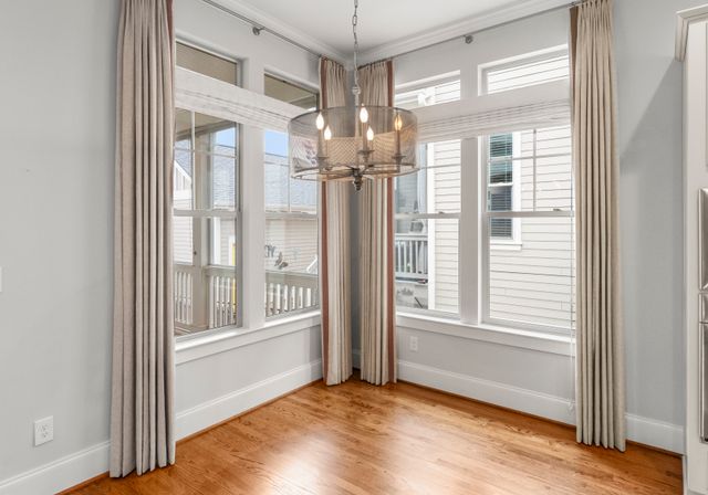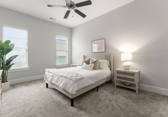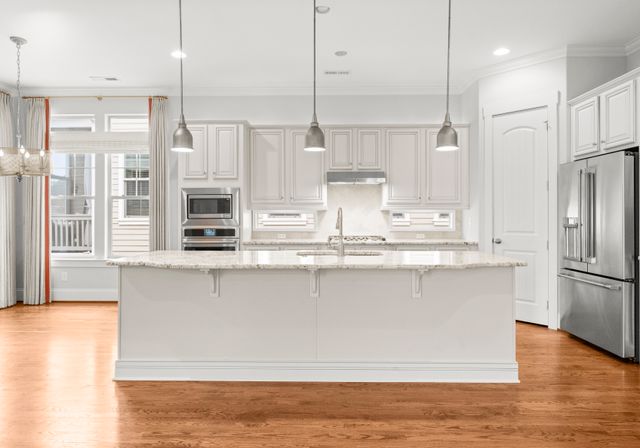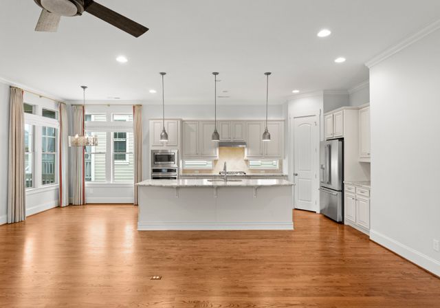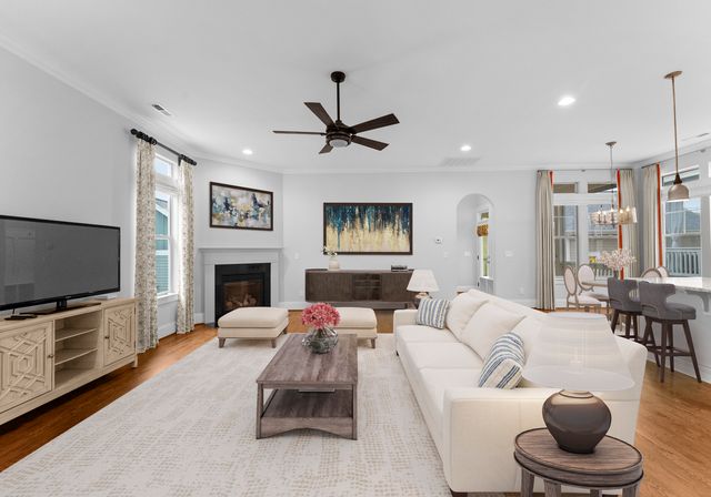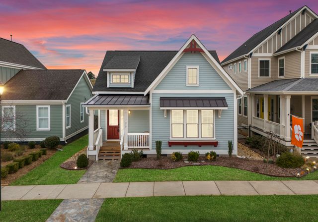 This beautifully designed one-level residence is set on a prime interior lot with low maint. and lush greenery. The front porch and screened patio offer perfect spots for relaxation, showcasing impressive curb appeal. Inside, the open layout effortlessly blends the living room, dining area, and kitchen. The kitchen is a chef’s dream with custom cabinetry, granite, and a spacious island. You'll find top-of-the-line appliances, inc. a gas stove and convection oven/microwave. The third bedroom features a Murphy bed and shelving. Larger windows let in abundant natural light, complemented by detailed moldings, neutral colors, and beautiful wood floors. The home boasts 10-foot ceilings, newer carpets, and a tankless water heater. Enjoy fantastic amenities, inc. the Riverwalk Trail, Rock Hill Outdoor Center, playgrounds, sidewalks, paddlesport launch, athletic fields, and bike lanes. This remarkable home, along with its outstanding neighborhood features, is a must-see!